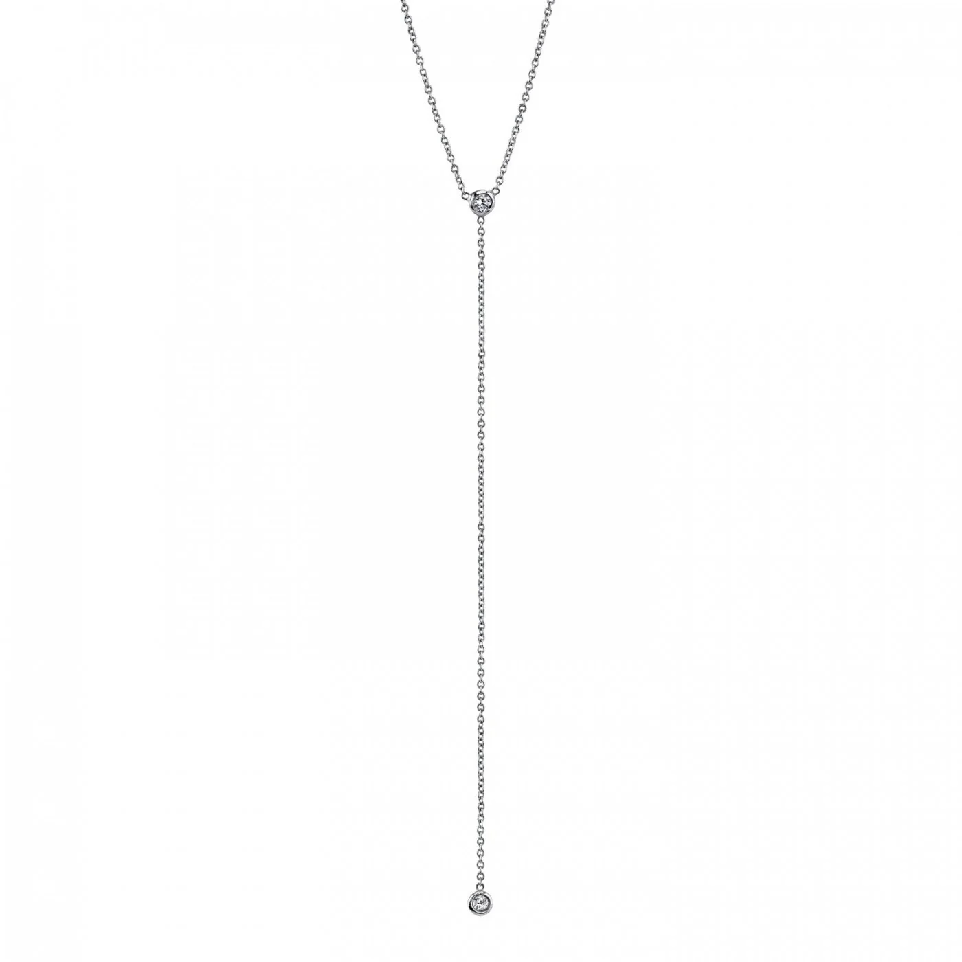 2.5mm and 1.8mm Set Stones. 3in Lariat Drop. 1mm Rolo Chain. Lobster Clasp.Ā
