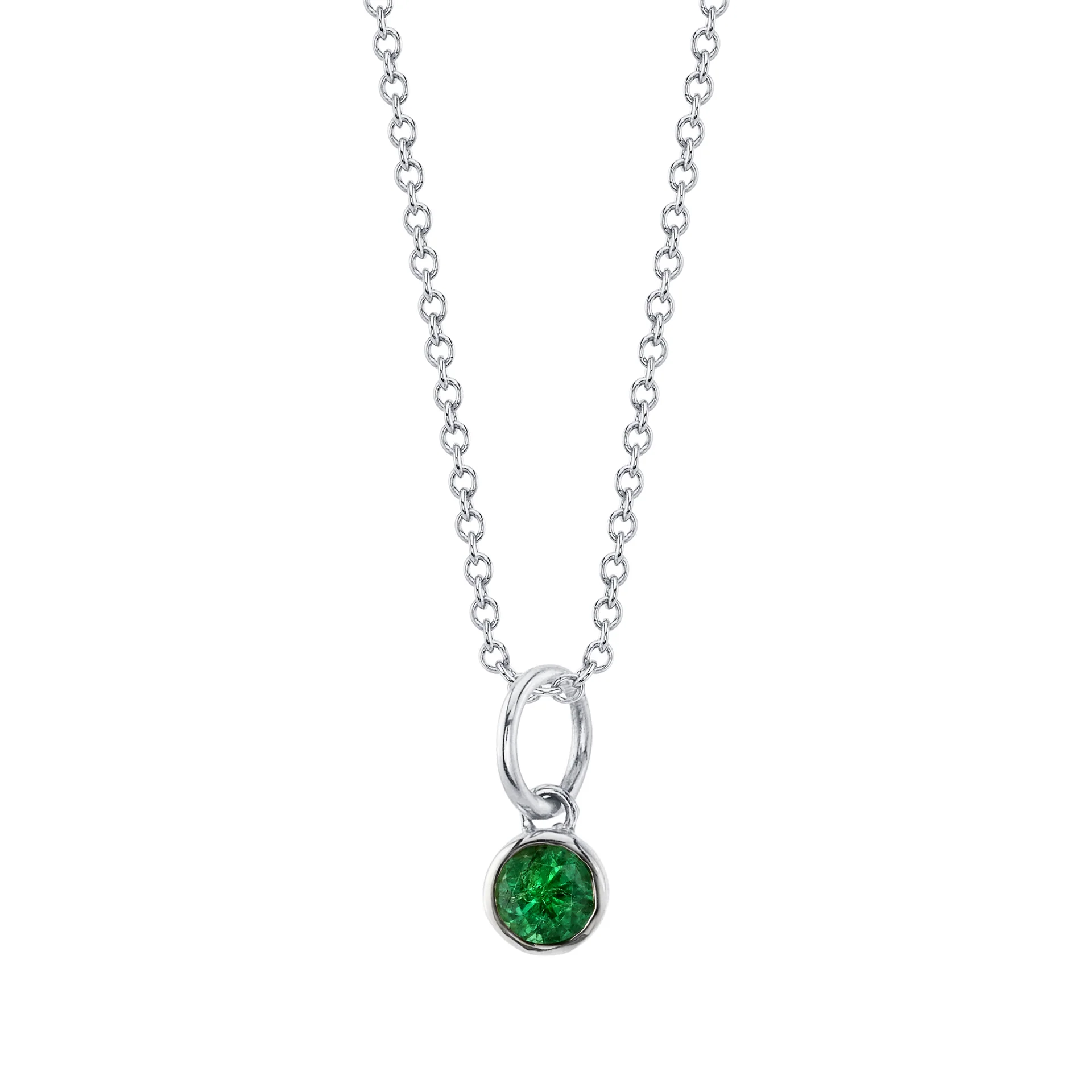 Single emerald birthstone charm for May birthdays. Wear alone on a delicate chain or pair with your favorite charms for a personalized look. Not recommended for unsupervised children under 3 years old. Emerald has been associated with Venus, the Goddess of Love and it is believed that emeralds assist in the flow of our breath and the opening of our heart.Ā