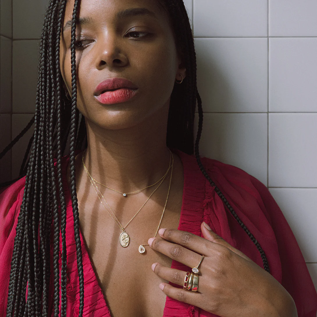 3 One-of-a-kind Pear Shaped Rose Cut Diamond Necklaces. This necklace features a sparkling pear shaped rose cut diamond in a 14k yellow gold bezel setting.Ā Rose cut diamonds have a rich history dating back to the 16th century. Their characteristic flat bottom and domed top with triangular facets, resemble the petal of a rose. This gives them a distinctive vintage charm and soft romantic appeal. With a shallow depth and large surface area they also reflect light in a range of colors. Diamond is the hardest naturally occurring substance on earth, often symbolizing love and prosperity and are the birthstone of April.