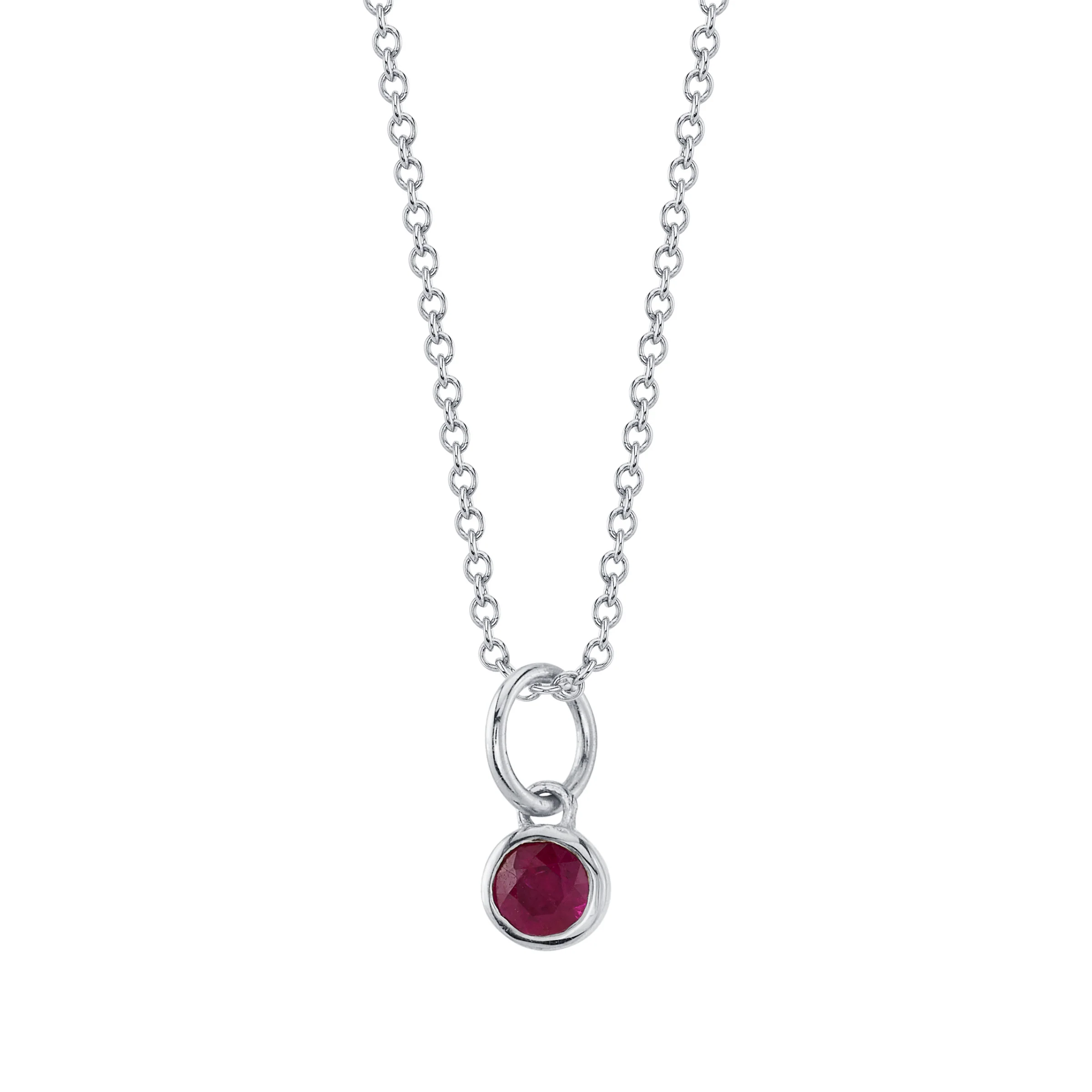 Single ruby birthstone charm for July birthdays. Wear alone on a delicate chain or pair with your favorite charms for a personalized look. Not recommended for unsupervised children under 3 years old. Rubies symbolize passion and energy and are said to bring love and success.Ā Ruby is also known as the stone of courage, and legend tells us that a person possessing a ruby can walk through life without fear of evil or misfortune.Ā